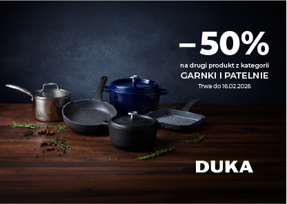 Kitchen life to miejsce wspaniałych doświadczeń, którymi z radością dzielimy się z innymi ludźmi. Umacniamy więzi, tworząc wspólne chwile dawania i dzielenia się, autentycznego wyrażania siebie poprzez to, kim jesteśmy, czyli to, co w nas najlepsze. Dlatego w Duka dokładamy wszelkich starań, aby nasze wysokiej jakości produkty były inspiracją dla coraz to nowych pomysłów na spędzanie czasu ze sobą. Słuchamy ludzi i ich potrzeb, aby nasze propozycje naturalnie odpowiadały ich oczekiwaniom w zakresie bezpieczeństwa, jakości i wyjątkowego wzornictwa. Wszystko to pod hasłem „Kitchen life”, które jest wizytówką i jednocześnie zobowiązaniem marki Duka. W naszych sklepach znajdziesz szeroki wybór artykułów kuchennych, porcelany, sztućców i szkła stołowego. Sezonowe kolekcje tekstyliów, dekoracji i akcesoriów kuchennych pomogą stworzyć niepowtarzalną atmosferę w każdej kuchni i jadalni. Wizyta w naszym sklepie z pewnością pomoże również wybrać idealny prezent na każdą okazję.